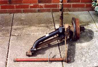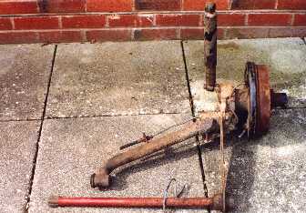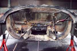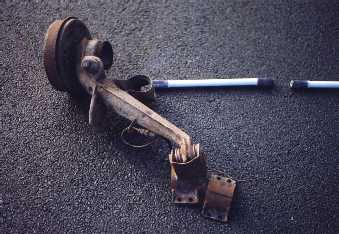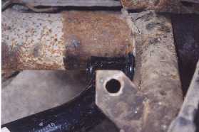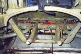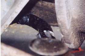 | Unfortunately there is a minor problem with this idea. The length of the torsion tube in a Brazilian bus is slightly longer than that in a split. Correspondingly, the distance between the spring plates is also slightly longer. This results in the Brazilian control arms sitting quite close to the gearbox hanger when fitted up to a split. This is shown in the picture on the left above. Although the control arms do actually clear the hanger, (please see picture also on the right), the problem is that the space for welding a bracket around the control arm is pretty limited. The most easy solution is to make the gearbox hanger actually part of the bracket. There is another option on the same theme out there, which is to use modified baywindow bus control arms. Wayne Tyas from Volksheaven in the UK sells pre-cut and shortened control arms for this purpose. |