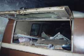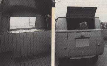 This is a barndoor optional tailgate in all its glory. The colour images are of a tailagte from a '54 Portuguese bus, whilst the black and white images are of an early '52 bus (notice the single reflector). It is interesting to notice that the '52 tailgate has no rear window and has the same inner strengthening as that of the engine lid.