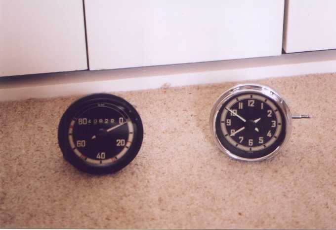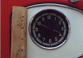 Yep!!! The clock is back and unrecognisable! The job Bedford dials has done is absolutely great. After a bit of a problem with colour, which they fixed for free, the clock is now perfect. They had to repair the mechanism, make new hands, design and print the face, chrome the ring, and get out all the dents. They made a fine job of it too, I can't recommend them enough. I have the rights to the dial pattern so if you have a 53 deluxe and a clock to fix, then I'm your man! |