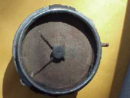 | You might have noticed that I said "should have a clock" in the paragraph above. Unfortunately the mangled remains of a clock shown on the right is what I actually own!!! Hopefully with this awful mess and the photos above sent to me by Mark Rafferty (Thanks a lot Mark) a company in the UK, Bedford Dials, thinks that they can restore it. Lets hope so. |