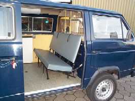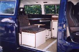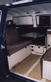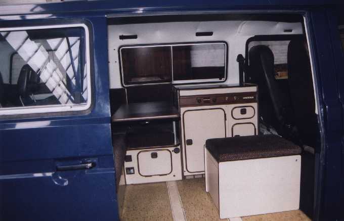 The interior is obviously very spartan as Prisoner types don't normally have need to stop off for a cuppa on route. In contrast I do, regularly, so basically I needed to find an interior a little more luxurious. Anyway, if you are going to do something you might as well do it properly. To this end I splashed out on a used but original Westfalia interior. Fabulous. Rest assured that any prisoner now carried, is in utmost comfort. Click to see pictures full size. |